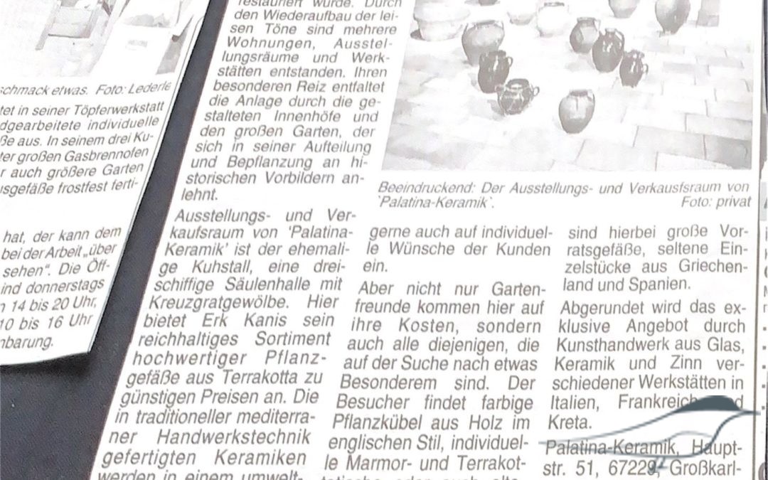 Eröffnung von Palatina-Keramik in Grosskarlbach. „Grünstadter Wochenblatt“ / 1997